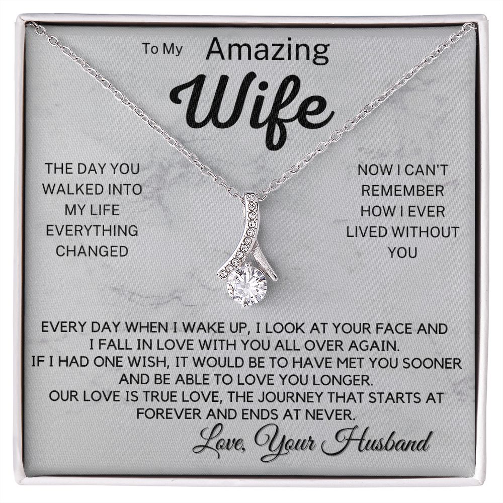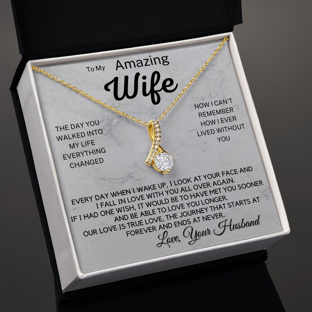 Imagine her reaction when she opens this stunning gift! The Alluring Beauty necklace features a petite ribbon shaped pendant that is sure to dazzle your special someone. Whether it's a birthday or anniversary, make sure to get her a gift she will love for years to come.
